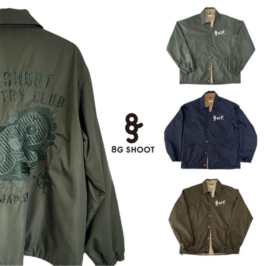 表地に鈍い光沢とコシのあるナイロン、裏地にはコットンネル素材を使用した、ヴィンテージ感のある仕様。左胸にgolf logoをプリント、背中には8G SHOOT COUNTRY CLUBのグラフィックを刺繍で表現。ややゆったりめの身幅と短くない着丈で、プレー時の動きやすさとタウンユースでの着まわしも良く、長いシーズンでご着用いただけるアイテムになります。