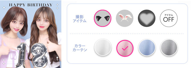 2. まるでセルフ写真館!?「カラーカーテン・撮影アイテム・ポーズ」を選んで撮る「撮影クリエイト」