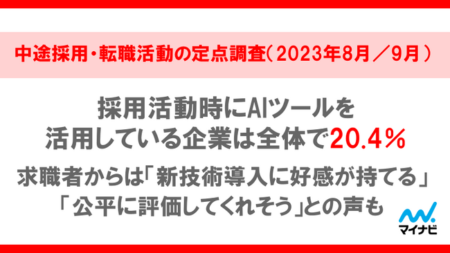 採用活動時にAIツールを活用している企業は全体で20.4%。求職者からは「新技術導入に好感が持てる」「公平に評価してくれそう」との声も