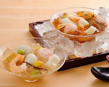 (下)塩で仕上げた豊かな風味の鯛だしに、爽やかなゆずを合わせた一品。