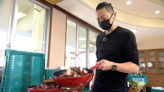一方下國も、沖縄を縦断ながら食材探しへ。ベテラン漁師の船に乗って見つけたのは、サンゴ礁に生息する、まるでアワビのような味わいの高級貝・夜光貝。続いて向かったのは、北部の大宜味村。ここで出会ったのが、苦みをとらずとも生でサラダとして食べられるというゴーヤ。さらに、普段は捨てられてしまうというゴーヤの葉からも料理のヒントを得た。そして最後に求めたのは、沖縄でも国頭村でしか手に入らないと言われる幻の肉。