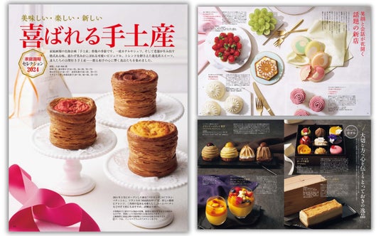 2024年にオープンした注目の新店から厳選した手土産のキーポイントは、開けた瞬間に心がときめくビジュアル、サプライズのある味わい、皆でシェアしてつながる喜び。そして今話題の昭和レトロな洋菓子は、温かみのあるデザインと味を受け継ぎながら進化を遂げています。世代を超えてカンバセーションピースになる一品をお届けします。