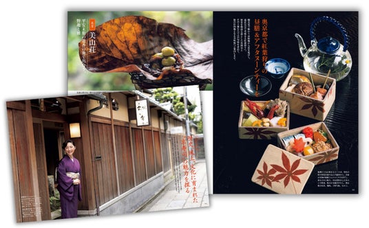 『源氏物語』の「紅葉賀」を趣向にしたお菓子とお茶一服を愉しむ至福のひととき、奥京都で紅葉狩りを楽しみながらの昼膳&アフタヌーンティーを満喫できる美味処をご堪能ください。