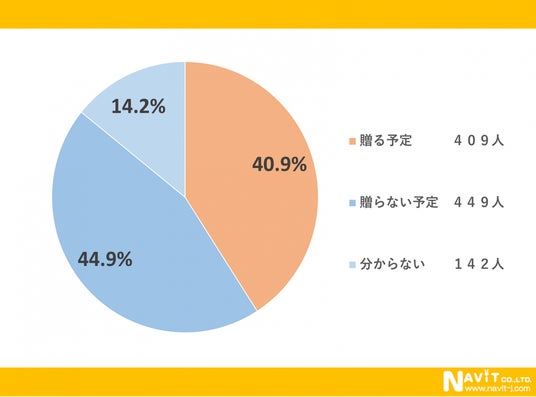 母の日にプレゼントを送りますか?というアンケートに対して「贈る予定」と回答した人は40.9%でした。また「分からない」と答えた人は14.2%という結果になりました。