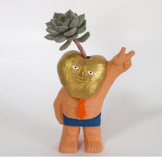 櫛下町祥吾「花を愛でるハートマン」(一輪挿し)木彫、3Dプリンター 高さ14.0×幅10.0×奥行7.0cm
