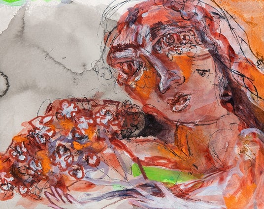 赤松玉女 「ハナタバーオレンジ」 紙・混合技法 縦22.0×横」27.5cm