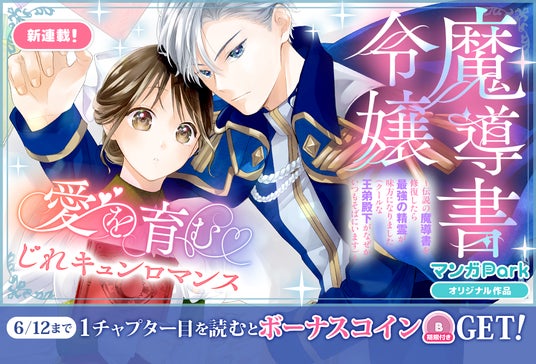 マンガParkでは「魔導書令嬢~伝説の魔導書を修復したら最強の精霊が味方になりました(クールな王弟殿下がなぜかいつもそばにいます)~」の新連載を記念して、読書チャレンジキャンペーンを実施いたします。期間限定&読めば必ずコインがもらえるBIGチャンス!