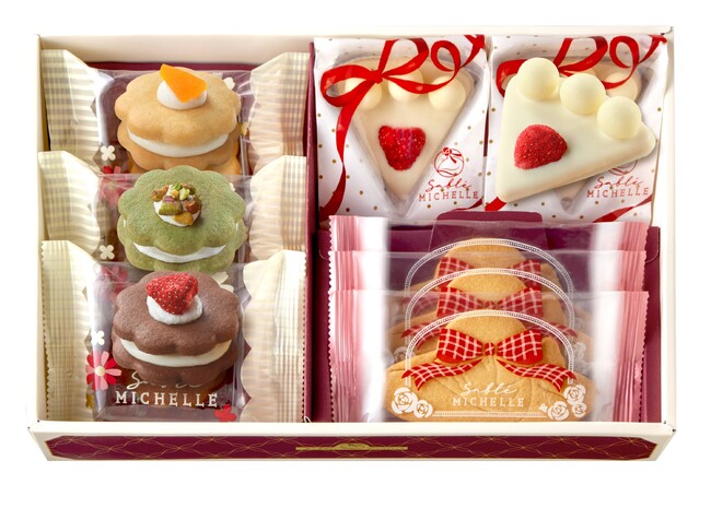 いちごの乗ったケーキサブレに、クリームをサンドしたお花の形をしたサブレ。そして、大きな帽子の可愛いサブレ。サブレミシェルの自慢の可愛いサブレたちが勢揃い!様々な味わいが楽しめるのはこのギフトだけです。大切な人への贈り物にもおすすめです。