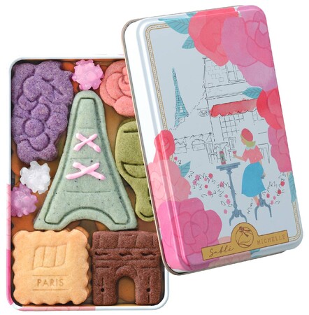 世界の国、都市をテーマにしたサブレ缶です。可愛らしいデザインの小さな缶にそれぞれの国、都市にちなんだモチーフのサブレが入ります。ブランドのイメージキャラクターのミシェルが世界を旅して見た美しい花と景色、食べ物など、大切な旅の思い出を小さな可愛らしい缶にギュッと詰め込みました。種類は全 16 種類となります。缶のパッケージ、中身の種類もそれぞれ異なった、ブランドを象徴するメイン商品になります。