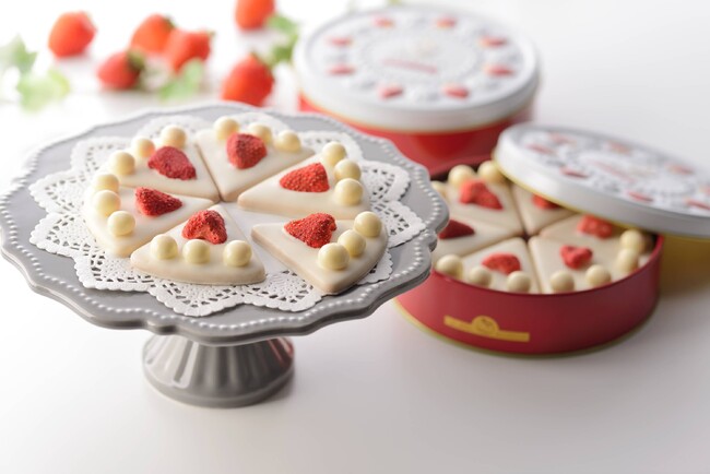 フリーズドライの苺とホワイトチョコでコーティングされたさっくり食感のサブレと、バター&イチゴのシンプルな型抜きサブレの3 種の組み合わせです。