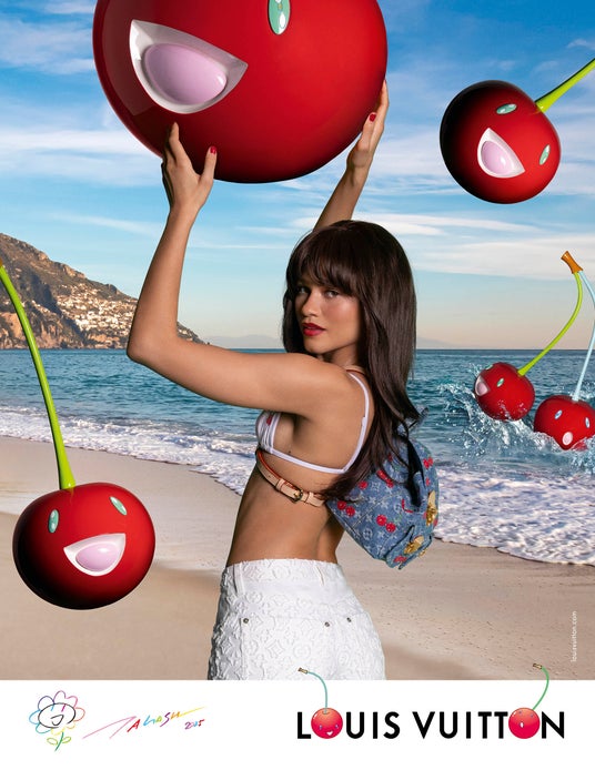 「Louis Vuitton × Murakami」第3章のキャンペーンは、まるで映画のシーンのような地中海のリヴィエラの夏を舞台に、メゾンのアンバサダー ゼンデイヤが再び登場。著名なオランダ人フォトグラファーのデュオ、イネス & ヴィノードが撮影を手掛け、華やかで大胆な真新しい5つのイメージの中でゼンデイヤが新作コレクションのキーアイテムを身にまとい、遊び心あるジャイアントサイズで描かれた村上隆のチェリー・モチーフに囲まれています。