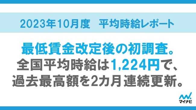 株式会社マイナビ(本社:東京都千代田区、代表取締役 社長執行役員:土屋芳明)は、アルバイト平均時給レポート(2023年10月度)を発表しました。本調査は、アルバイト・パート求人情報サイト『マイナビバイト』(https://baito.mynavi.jp/)に掲載された求人広告データを集計したものです。