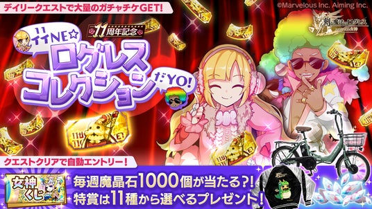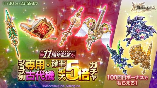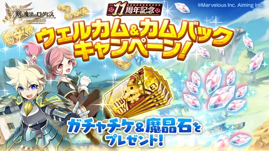 株式会社マーベラス(代表取締役社長:佐藤 澄宣/所在地:東京都品川区)は、スマートフォン向け本格オンラインRPG『剣と魔法のログレス いにしえの女神』において、2024/11/20(水)にログレス11周年を祝した「11th Anniversary」を開始したことをお知らせいたします。