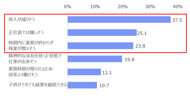 公務員や企業で人手不足解消のため導入が進んでいる「週休3日制」。現状正社員である働き手からは「現在の職場では導入不可能(65.8%)【図8】」などマイナスな意見がみられました。確かに、既存の業務形態のなかで労働力をやりくりするのであれば、「休みが増えれば収入が下がる」「誰かが休むと業務のしわ寄せを受ける」というネガティブな事態が想定されます。