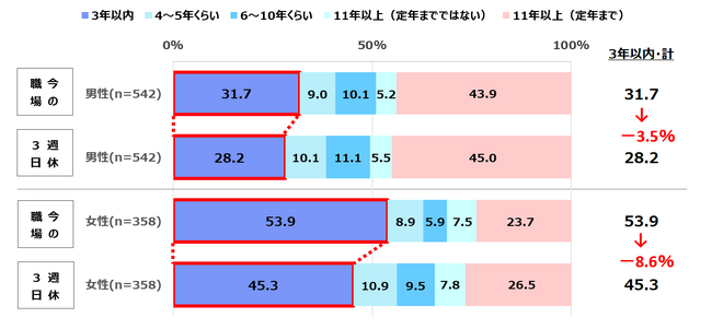 図6】週休3日制の導入が勤続意向年数にどのように影響するか(単一回答)