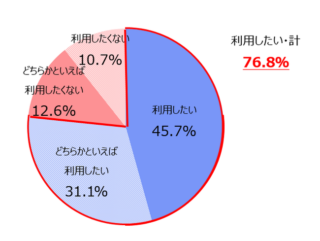 週休3日制の利用意向について、勤務日数の減少に併せて収入も減少する場合、「利用したくない」は66.8%だった。一方、勤務日数が減少しても収入は変わらない場合は「利用したい」が76.8%に達し、収入の増減が利用意向に大きく影響することが分かった。【図1、2】