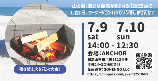 本イベントの開催地「ANCHOR」が所在する和歌山県白浜町はワーケーションの先進地です。白良浜に代表されるビーチや温泉などの豊富な自然と観光資源があり、普段の働く場所とは切り離された環境が感性を刺激し、クリエイティブな活動を後押しします。