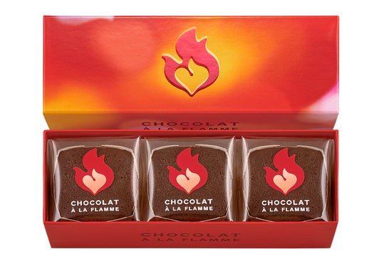 炎でとろとろ焼き蒸すことによって、一瞬で“ふわっ”ととろける口どけが生まれる『炎のチョコレート』。独自の炭火焙煎クーベルチュール<炭火ショコラ>にビターショコラとガナッシュをあわせた、濃厚なコクがたまらない逸品です。最大限に引き出したチョコレートの美味しさと、極上のくちどけを体験してみて!