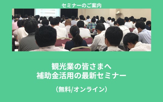「観光業の皆さまへ|補助金活用の最新セミナー(無料/オンライン)」の配信を開始しました。助成金なうでは補助金の申請サポートを承っております。