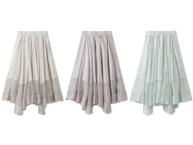 軽やかなシアー素材を贅沢に使用した、フェミニンムード溢れるフレアスカート。