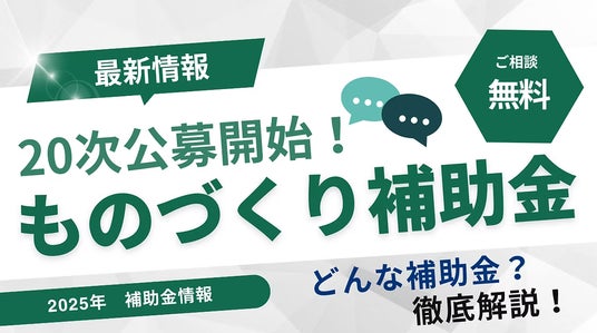 2025年4月、中小企業が生産性向上や経営革新のための設備投資等を支援する「ものづくり補助金」20次の公募が発表された。
