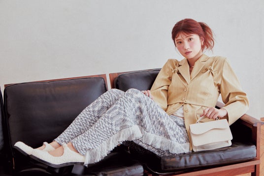 「それぞれのスタイリングにお気に入りポイントがありました。ウェイター風のコーディネイトのパンツのシルエットが好きで、スタイリストさんにブランドを聞いちゃいました。制服風のときに着たジャケットのサイズ感も素敵。マリンスタイルは、赤のグローブが可愛かったです! 驚いたのはナース風のスタイリング。何枚かトップスを重ねたあと、最後にビタッとしたTシャツを着たんです。それで全体が締まって見えて、素敵だなと思いました」