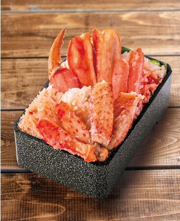 タラバガニ、花咲ガニ、毛ガニ、ズワイガニの脚肉とほぐし身をふんだんに盛り付けた蟹を食べつくせるお弁当です。
