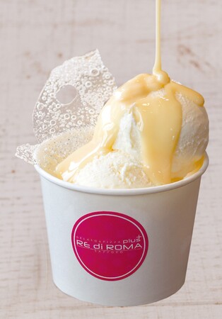 まるでバターをそのまま食べているほど濃厚なバタージェラート。そのままでも勿論美味しいですが、その上から魔法のソース「牛乳でつくったミルクジャム」をたっぷりとかけて提供します。北海道の牛乳や生クリームをたっぷり使用した濃厚なジェラートは格別です。