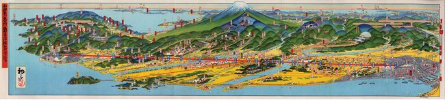 「大正の広重」と呼ばれた稀代の鳥瞰図絵師・吉田初三郎。生涯に数千点の作品を残したといわれていますが、大胆な構図で寺社や温泉、名勝といった沿線の観光地を、空を飛ぶ鳥の視点で、彩り豊かに描きました。その最高傑作「小田原急行鉄道沿線名所図絵」(昭和2年)を本書では二つ折りの両観音開きで掲載しました。