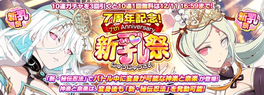◆「7周年記念 1日1回無料10連新乳祭」開催!