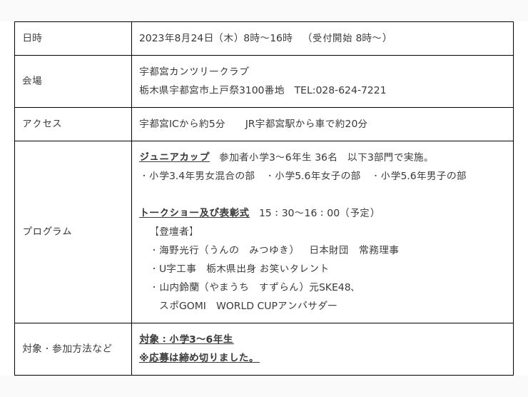などから、ゴルフのジュニアカップを開催することといたしました。
