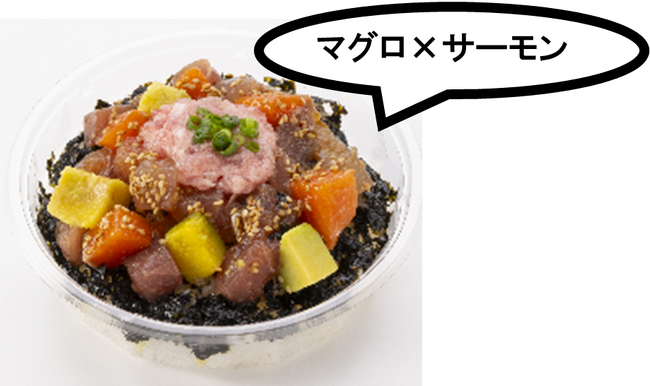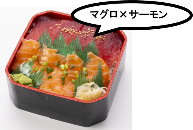 寿司ネタ人気のマグロとサーモンを知床寿司独自のタレで漬け込んだ漬け丼。