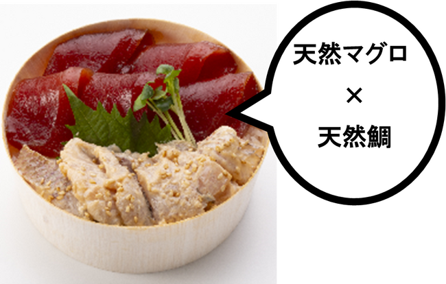 天然本鮪の旨みと天然鯛のゴマダレ和えの旨み、Wの旨みの共演をお楽しみいただけます!