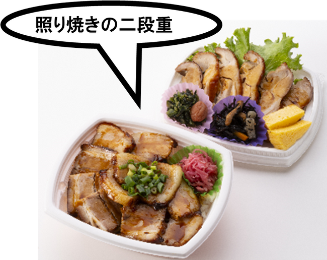 豚の照り焼きと鶏の照り焼きが二段重に!