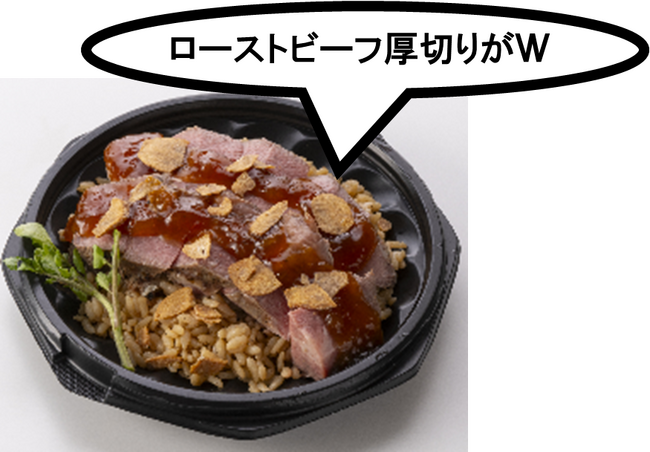 〈ポール・ボキューズ デリ〉希少部位トモサンカク使用ローストビーフステーキカットをダブル!ガーリックライス~オニオンソース~ 1,620円