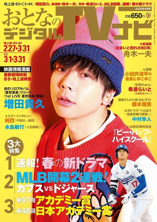 産経新聞グループの産経新聞出版は、こだわりの深い大人のための月刊テレビ情報誌『おとなのデジタルTVナビ』の4月号を発売しました。表紙は初のソロアルバムを出したNEWSの増田貴久。4月スタートの新ドラマ情報も満載です。