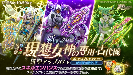 ■「ジョブ別 現想女神の専用武器・古代機確率アップガチャ」販売中!
