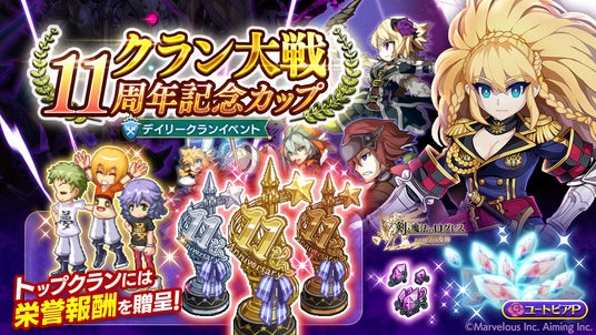 株式会社マーベラス(代表取締役社長:佐藤 澄宣/所在地:東京都品川区)は、スマートフォン向け本格オンラインRPG『剣と魔法のログレス いにしえの女神』において、2024/12/4(水)に「ジョブ別 11周年記念スペシャルガチャ」の販売、およびイベント「ログレスユートピア」のクエスト追加を含むアップデートを行ったことをお知らせいたします。