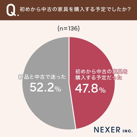 ■52.2%が、家具を購入する際に「新品と中古で迷った」