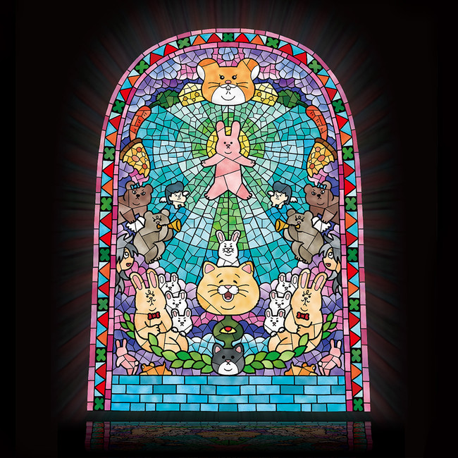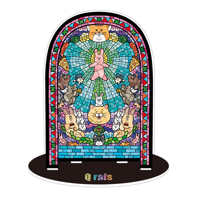 ステンドグラス風デザインのアクリルスタンドや缶バッジ、パズルなど、本展覧会ならではの記念グッズのほか、キューライスが描く人気キャラクターたちのグッズなどを多数販売いたします。