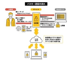 パスキー認証は、指紋認証・顔認証・PINなどの本人確認を使って認証を行うことで、パスワードを使用せずにログインできる次世代型の認証方式です。フィッシングなどの不正アクセスを構造的に防ぐ高い安全性を備えているほか、パスワードを記憶・入力する必要がないため操作性が高く、スマートフォンとWebの双方で生体認証によるスムーズなログインを実現します。