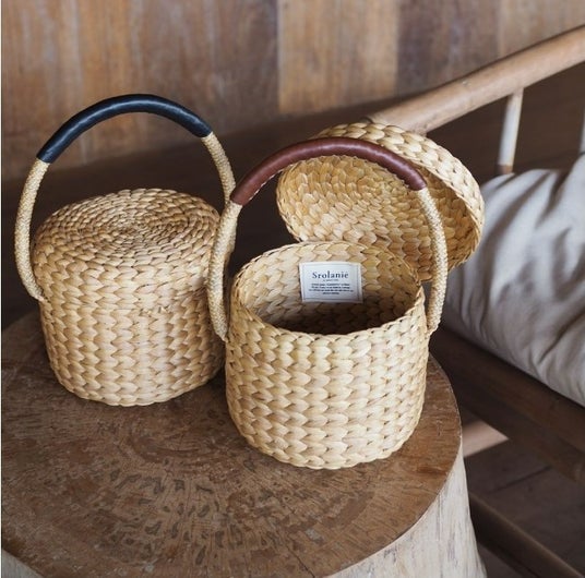 カンボジアの市場で“ラペア”に出会い、現 地でかごを編む女性の自立につながればと 池宮聖実さんが立ち上げた「moily」。てい ねいに編まれた明るい色味のシンプルなか ごは、油分をはじきやすく汚れたら水で洗える、頼もしい暮らしのアイテム。