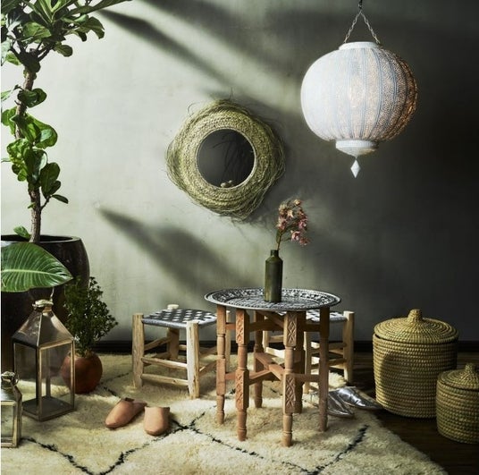 モダンで洗練されたモロッコのラグやバブーシュなど、インテリア雑貨も充実。