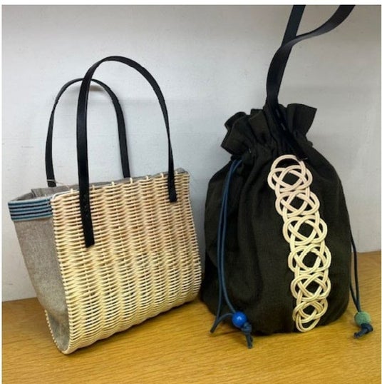 ポーセラーツやアイシングクッキー作家としても活躍する三原裕美さんが得意とする、籐と紅籐を使った暮らしに馴染むかご。“乱れ編み”の紅籐かごは、中に入れる巾着で印象が変化するブランドのアイコン的存在です。