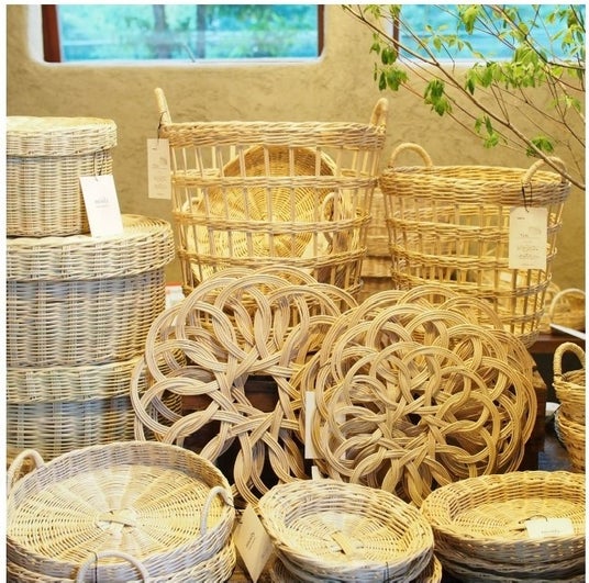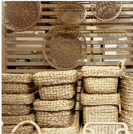 ベトナムからラタンやシーグラス、竹などを使い制作された様ざまな編み目とサイズのかごが届きました。一人ひとりの暮らしのスタイルにぴったりのかごが見つかります。