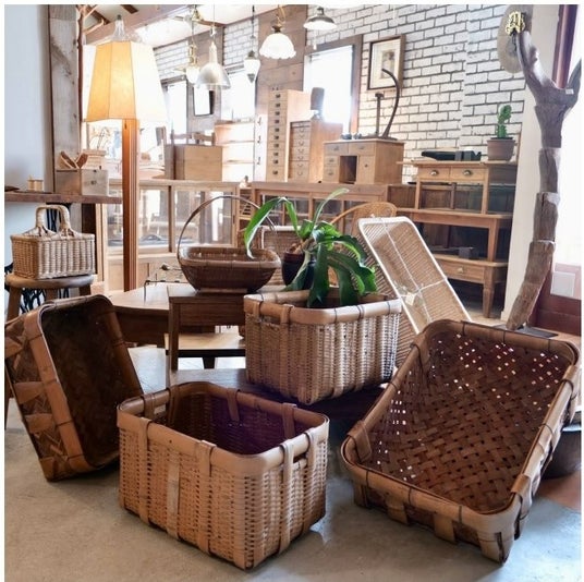 “ モノとヒトとを繋ぐ場所”として広島に拠点を持つブランドから。先人の知恵が生かされた、天然素材を使った数々のかごは、時を経て美しい飴色へと変化。新品の商品にはない独特の魅力を放ちます。