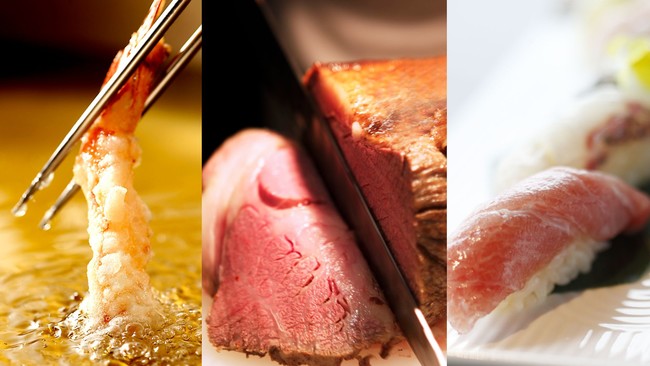数々のミシュランシェフとのコラボレーションを果たし、ホテルニューオータニ(東京)レストラン統括料理長を経て、今春より幕張の総料理長に就任した小出裕之渾身の「新江戸洋食」より、「コハダのポテトサラダ」や「白身魚のピカタ」などをご用意するほか、低温でじっくりジューシーに焼き上げるホテル伝統のローストビーフや寿司、その場で揚げる天麩羅などホテル王道グルメもお好きなだけお楽しみいただけます。