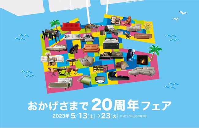 大丸松坂屋百貨店が運営する大丸インテリア館「ミュゼ エール」(所在地:六甲アイランド 神戸ファッションマート2階)は、約4,300平方メートル の売場面積を活かし、国内外から取り揃えた約100ブランドの上質な家具を展示、2003年のオープン以来ここでしか体験できない価値を提供してまいりました。誕生日を迎える5月13日(土)~23日(火)の期間、特別商品やプレゼントを用意し、20周年記念キャンペーンを実施いたします。 URL:https://www.daimaru.co.jp/musee_air/