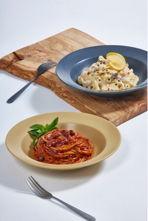 ローストガーリック入り濃厚トマトソース ¥378(税込)/レモンクリームソース ¥432(税込)