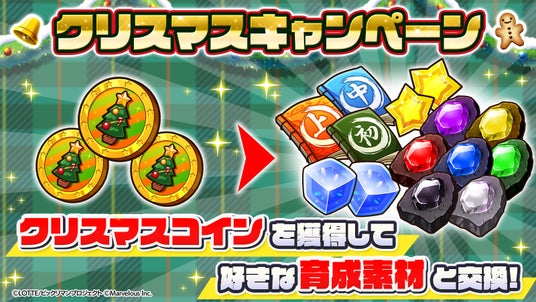 「クリスマスコイン」を毎日獲得して、好きな育成素材と交換しよう♪